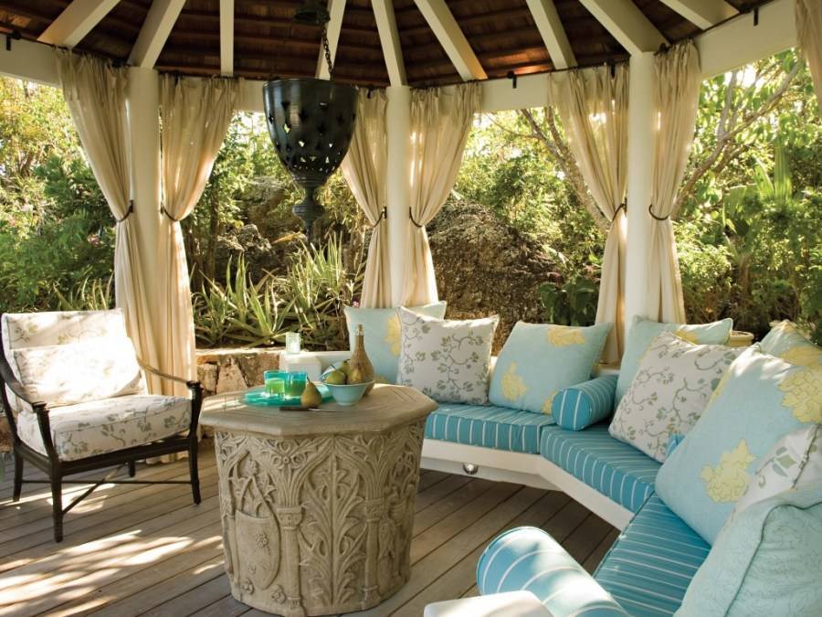 - Защита от дождя. Не для каждой зоны отдыха на даче это актуально, но если ваш климат предполагает частые осадки — задумайтесь о закрытой беседке взамен патио или перголы без крыши.