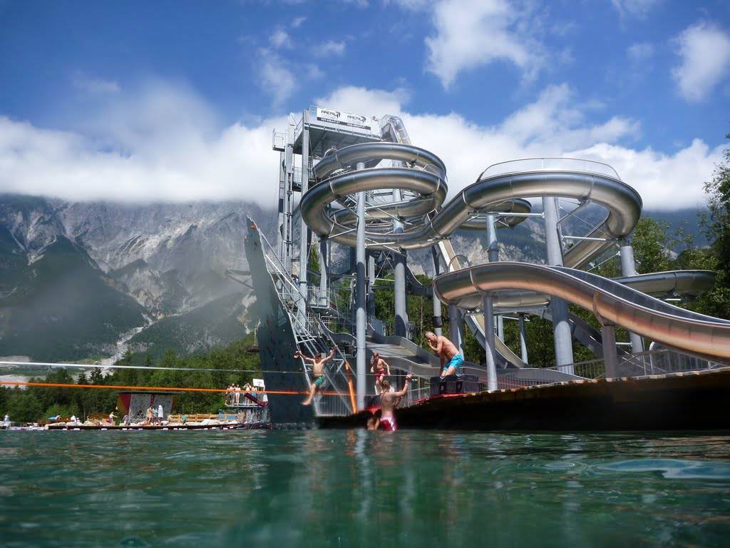 3. Ватербом Бали. Аквапарк расположен в Индонезии. Площадь парка занимает почти 4 га. Главной отличительной особенностью аквапарка можно считать его необычные аттракционы. Это настоящий рай для любителей экстрима. Посетители могут спуститься с горы в необычной капсуле с проваливающимся дном, прокатиться с крутой извилистой горки в полной темноте, съехать с горки вниз головой.4. Аквавенчер. Крупнейший аквапарк Востока, расположенный на острове Пальма Джумейра в ОАЭ. Сам аквапарк располагается в очень живописном месте. С вершины водных горок открывается невероятный вид. Весь развлекательный комплекс занимает около 18 га земли. На территории парка работают не только крутые водные горки, но также есть волновые бассейны, огромный аквариум, дельфинарий, роскошный пляж, протянувшийся почти на километр в длину. Для малышей оборудован детский развлекательный комплекс, который полностью безопасный, и безумно интересный.