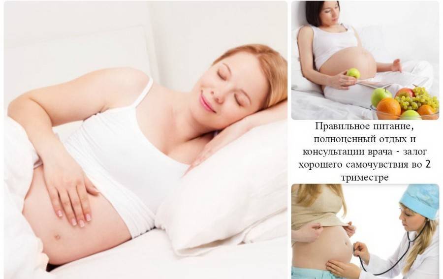 Правильное питание. Всё, что поступает в организм беременной, так или иначе поступает и к малышу. Поэтому не нужно злоупотреблять вредной едой. Исключив жареные, копчёные и сладкие блюда, увеличив количество белка и клетчатки, женщина обеспечит полноценное поступление питательных веществ. Во втором триместре беременные отличаются отменным аппетитом, поэтому контролировать режим питания в данный период нужно особенно тщательно. И, конечно, необходимо обеспечивать себя достаточным количеством жидкости посредством воды, чая, морсов и компотов.