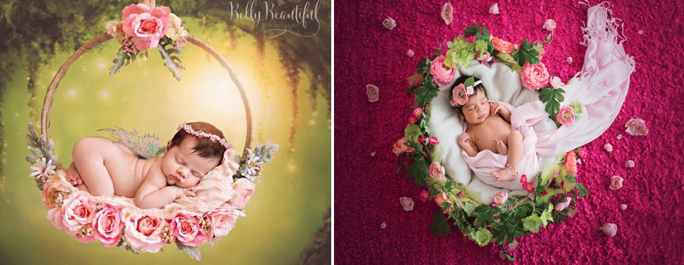 Такая фотосессия длится около 4 часов, поскольку кроху необходимо часто кормить, менять ему памперсы, а после повторно располагать перед камерой. Положительный момент – такие снимки легко редактируются: следует слегка подкорректировать качество кадра, наложить определенные фильтры, а затем довести все до идеального состояния.