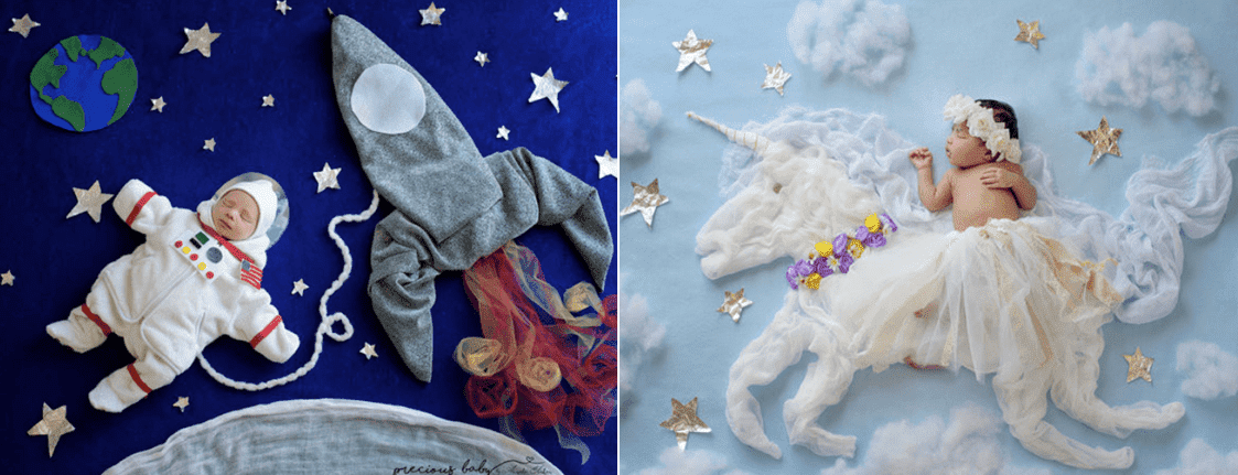 Спящий грудной ребенок – отличная основа для реализации фантастических сюжетов. За пару часов вокруг новорожденного можно создать волшебство.