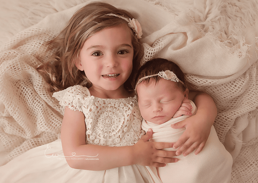 - С братиками и сестричками. Если у крохи есть старший брат или сестра, обязательно нужно запечатлеть их вместе. Зачастую такие кадры делают черно-белыми, подчеркивая главную идею. Такой снимок – настоящая драгоценность для семейного архива.
