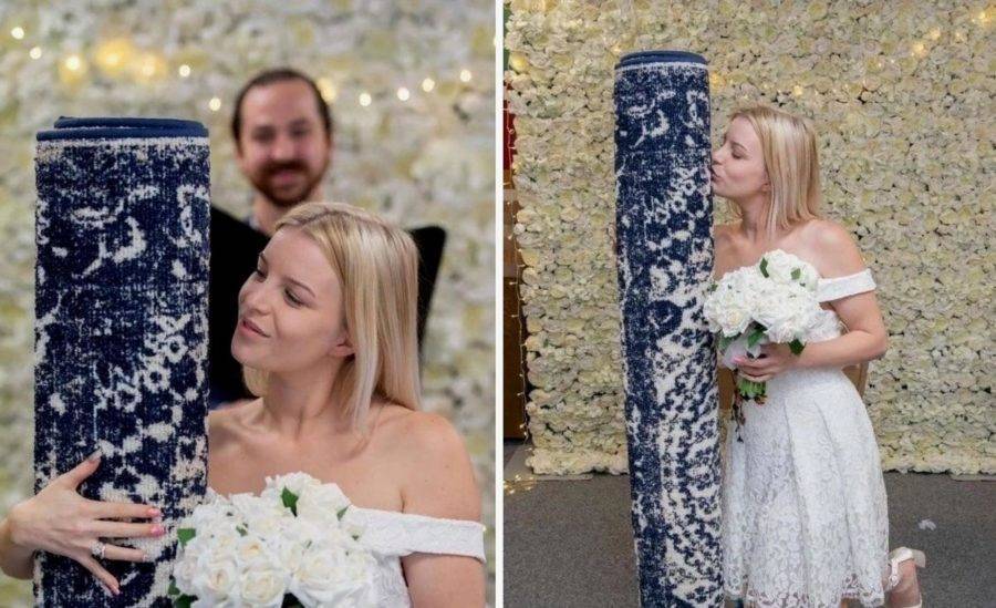 Друзья посчитали сложившееся положение абсолютно абсурдным, поэтому они, шутя, предложили ей пожениться со своим ковром, если она так им дорожит. Бекки понравилась эта идея, и она сыграла свадьбу с ним.