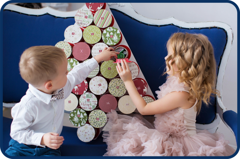 Адвент-календари для встречи Нового года на 2-3 недели состоят из заданий, подарков и сладостей. Требуют терпеливости, достаточно большого списка заданий на случай замены, если задание “не пошло”.