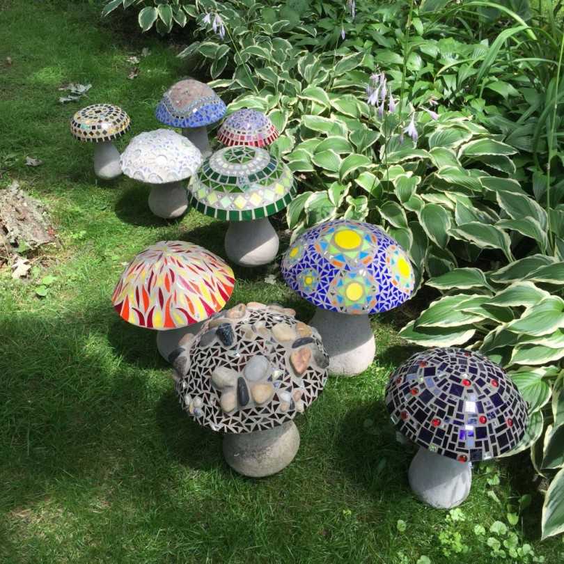 Теперь остаётся смазать клеем нижнюю часть пространства под грибками и «вырастить» травку