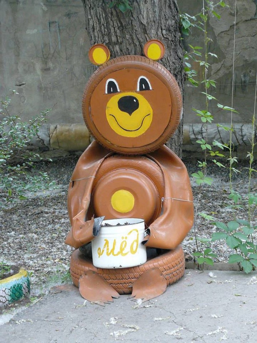 - Дополните поделку бочонком меда из пластилина желтого или оранжевого оттенка.