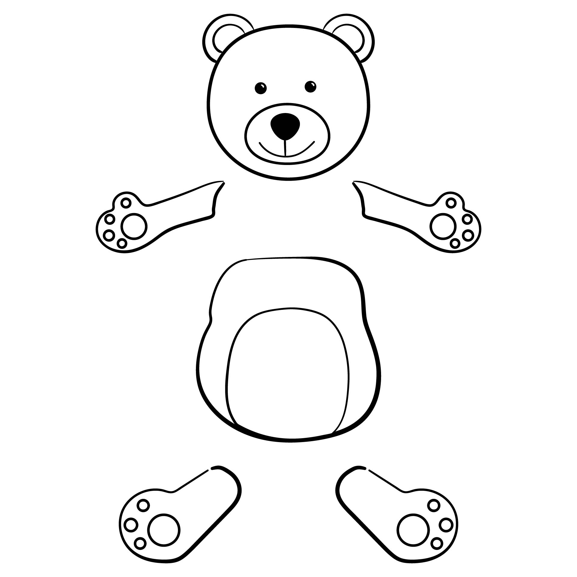 Распечатайте выкройку медвежонка или перерисуйте ее в нужном размере на картон. Вырежьте шаблоны деталей.