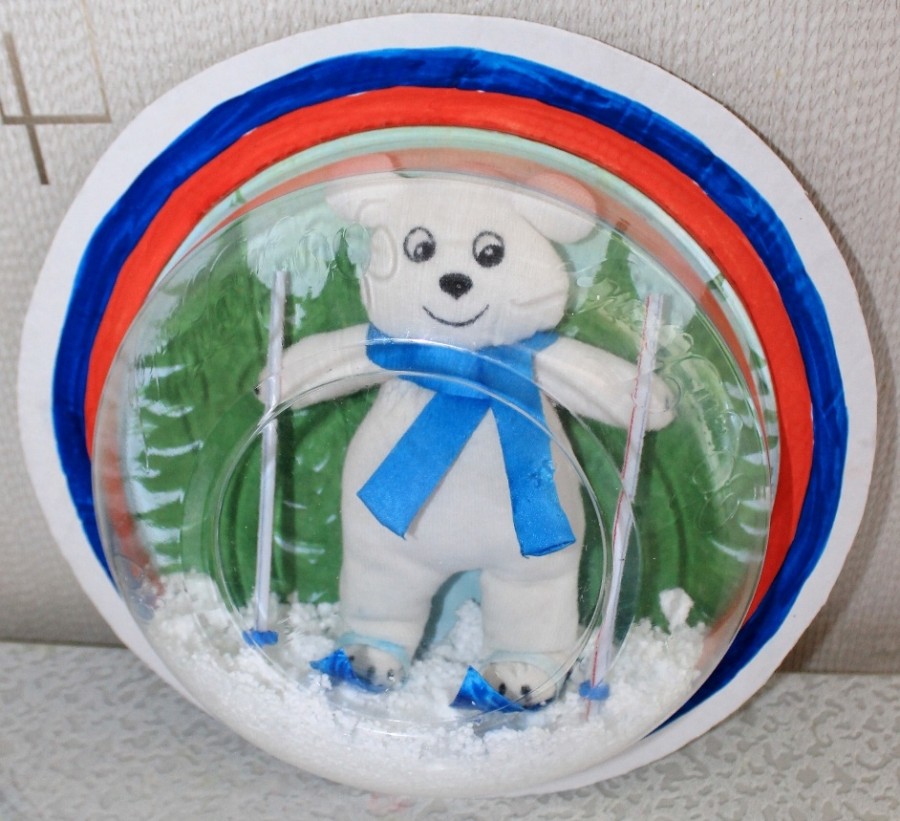 - приклеить в углу основы белую берлогу, а сверху наклеить морду медведя;