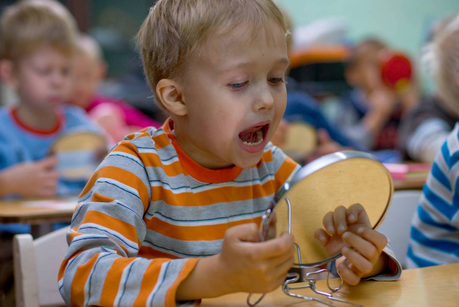 перед зеркалом начинают гримасничать — широко улыбаться, хмуриться, вытягивать