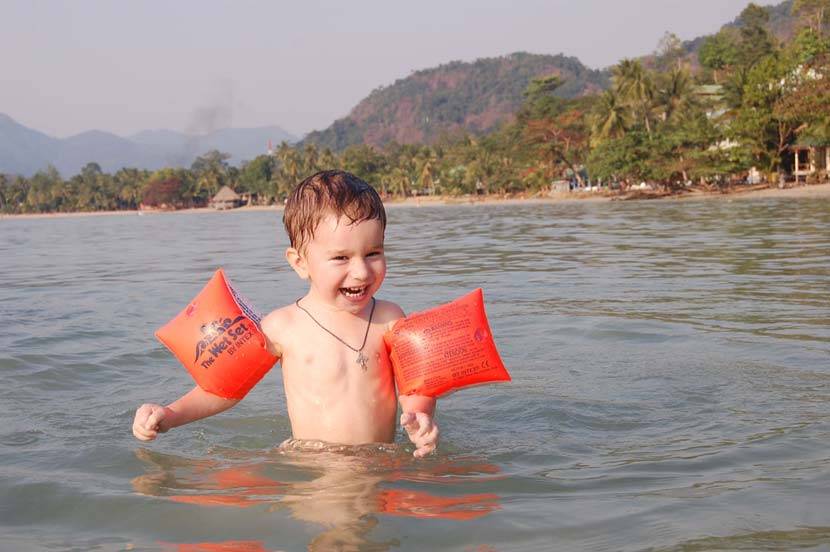 Купание ребенка на пляже
