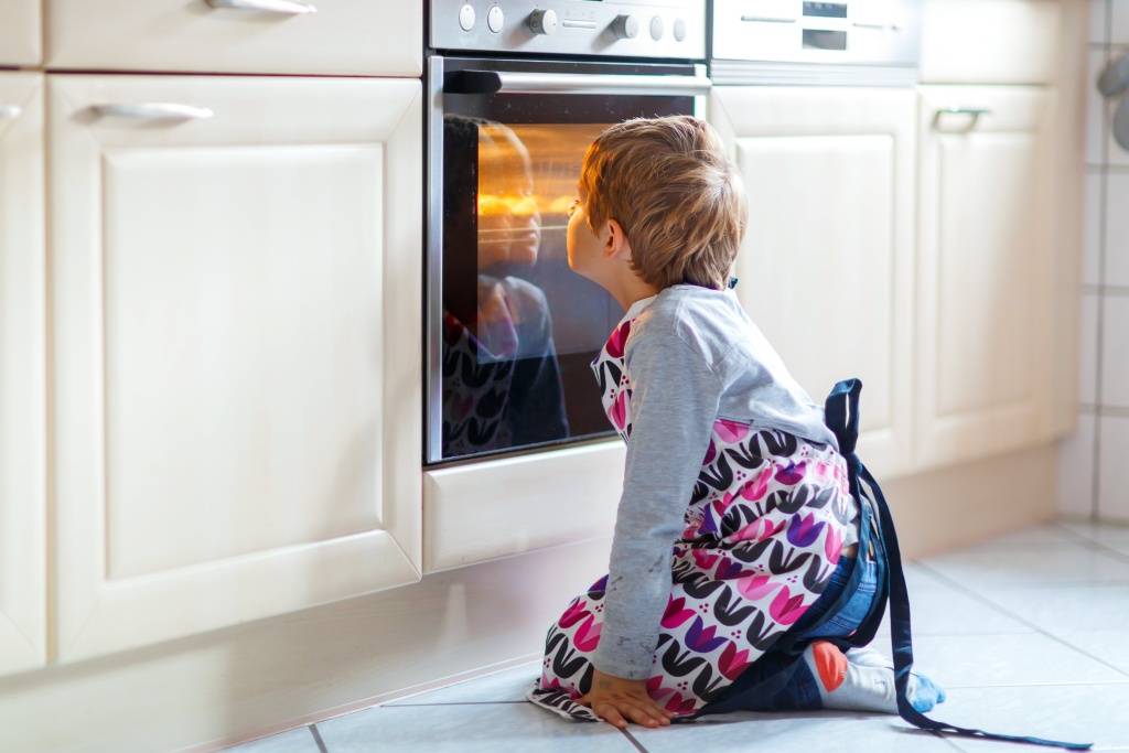 Будьте внимательны с плитой. Если до конфорок добраться легко – готовьте пищу на дальних конфорках, чтобы дети не смогли на себя ничего опрокинуть или дотронуться пальцами до открытого огня (или очень горячей поверхности, если плита электрическая). Либо приобретите специальный барьер, который не позволит вашим проказникам совать руки туда, куда нельзя.