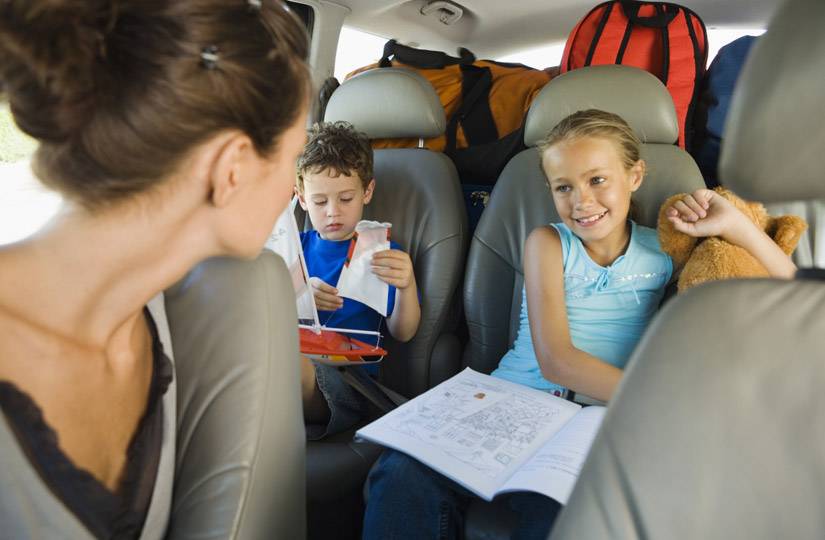 Сложных приспособлений не потребуется, да вы и не сможете их взять с собой, но все же необходимо «взять» много развлечений. Иногда развлечение — это вы, поэтому приготовьтесь посидеть с ребенком, поиграть с ним (конечно, если за рулем кто-то другой).
