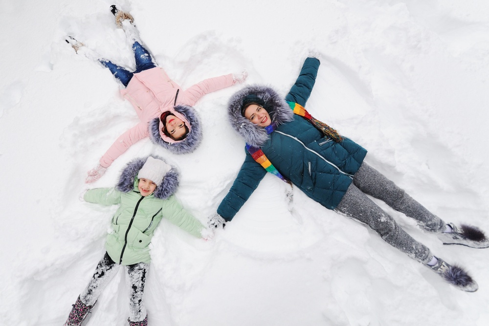 1. «Ангел». Ребёнку будет интересно вместе с мамой и папой делать разных ангелов на снегу, двигая руками и ногами.