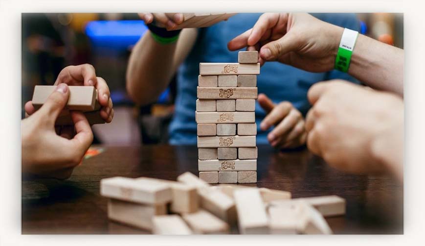 - «Башня» — старая добрая игра на ловкость. Игрокам предоставляются брусочки, из которых нужно выстроить башню, а затем разбирать ее маленькими кусочками снизу, не завалив всю конструкцию.