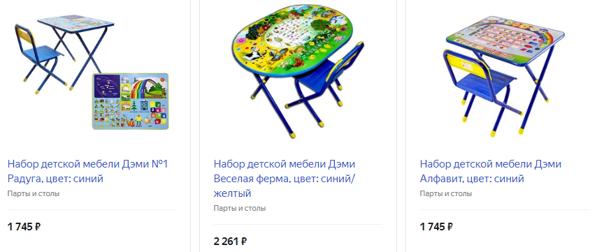 Стул с игровым столиком. В идеале — это складной стульчик со столом, чтобы можно было их убрать после игр и занятий. Столешница овальная, без углов, на поверхности которой изображена азбука и яркие картинки. Стоимость от 1500 рублей.