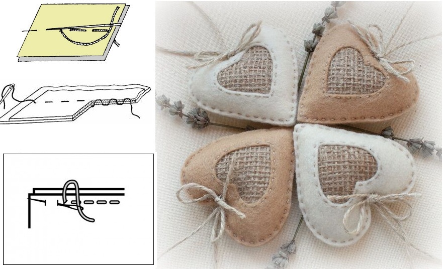 Далее, вырежьте заготовки из фетра, и сшейте игрушки с помощью сметочного или петельного шва. Не забудьте прикрепить петельку из ленты.