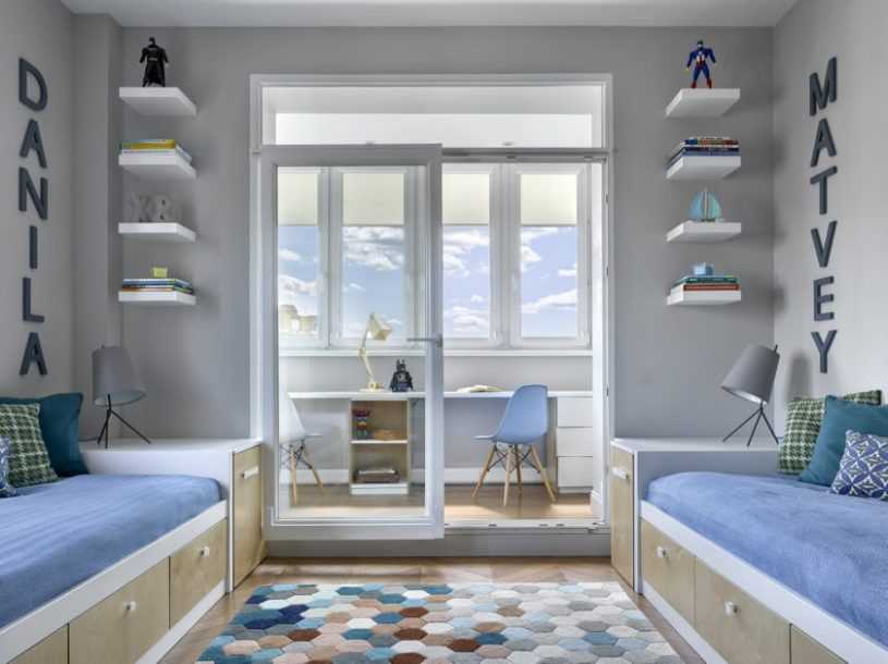 Детская комната для двоих мальчиков обустраивается с учетом их возраста и предпочтений. Если разница в возрасте небольшая, целесообразно купить двухъярусную кровать.