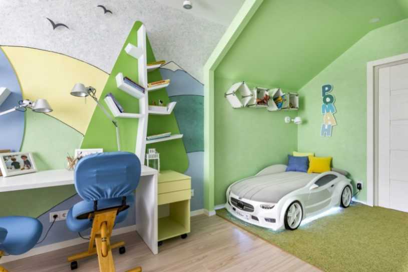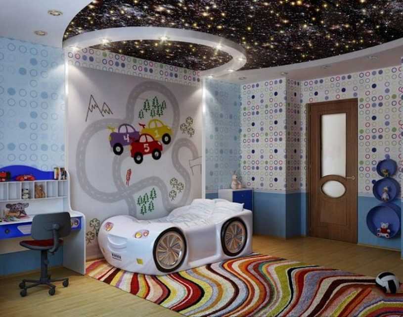 Подросшее чадо уже может диктовать свои предпочтения. Если мальчик увлекается машинками – оформи комнату в стиле автогонщика: наклей тематические обои, установи кроватку-автомобиль, коврик-трассу. Также можно поступить и в случае с юным моряком или спортсменом, наполняя комнату соответствующими атрибутами.