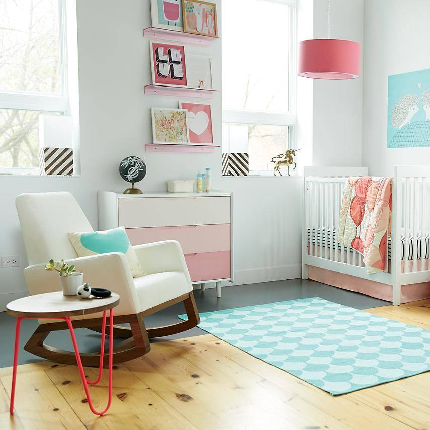 При выборе цвета главное не переусердствовать с яркими акцентами, которые сделают маленькое пространство еще меньше. Для детской новорожденного подойдут кремовые, бирюзовые, светло-серые и белые оттенки стен, которые будут сочетаться с бледно-желтым, мандариновым, нежно-розовым.