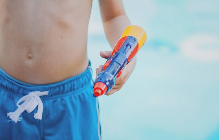 Игроки сражаются друг с другом с помощью водных пистолетов. Побеждает максимально сухой участник.