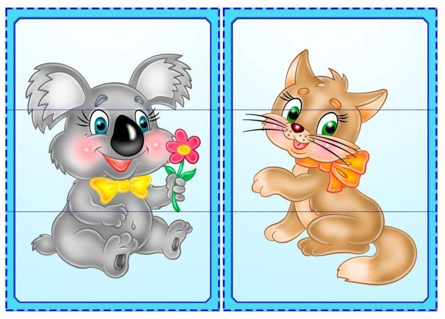 Подготовьте для игры картинки, изображающие знакомые дошкольникам предметы, разрежьте их на 4 части. Также расставьте перед детьми реальные предметы, соответствующие изображениям.