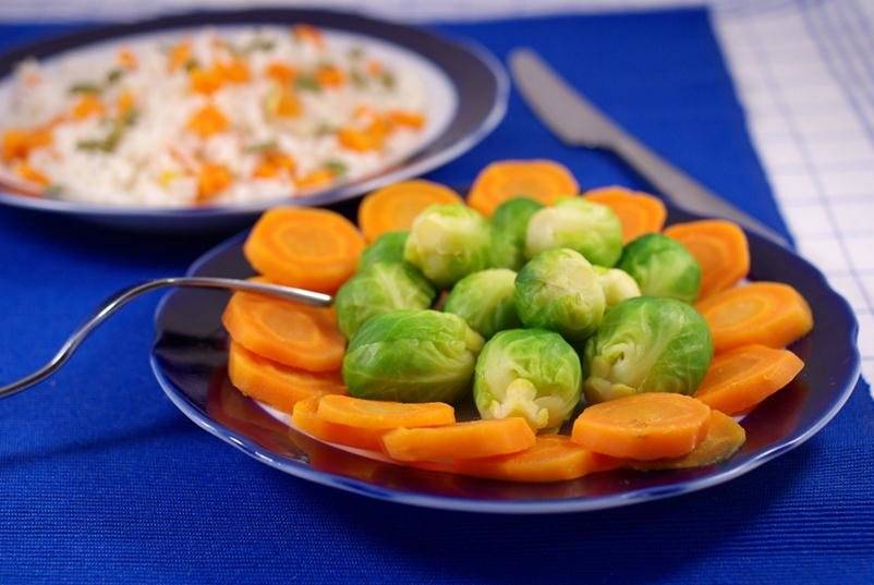 Гарниры: овощи (за исключением репы, редиса, шпината, щавеля, редьки, чеснока) в отварном, тушеном, запеченном виде; любые крупы.