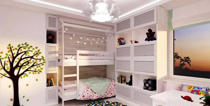 - рассмотрите возможность приобретения двухъярусной кровати. Спальная зона в этом случае будет совмещена;