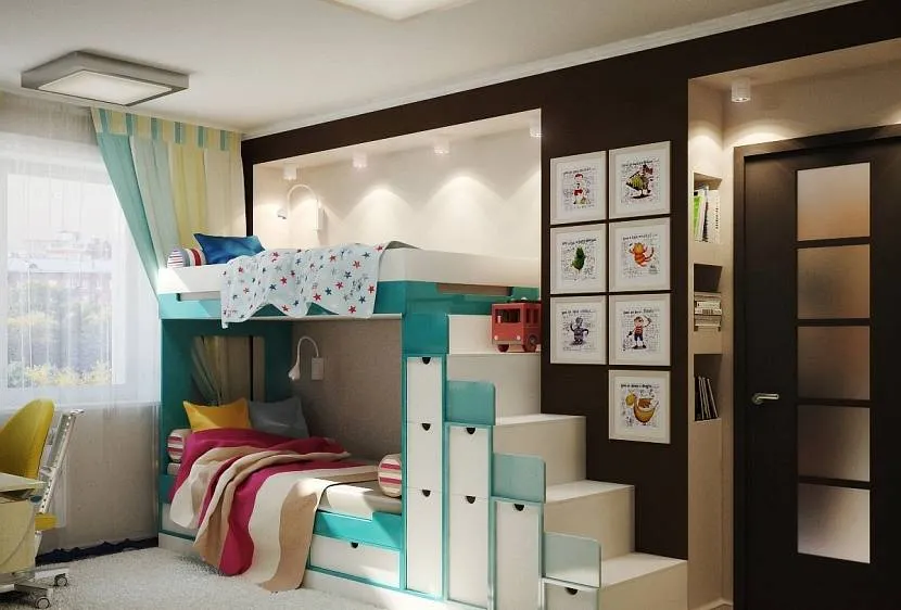 Красивый дизайн комнаты для двоих детей разного полаИсточник yandex.uz