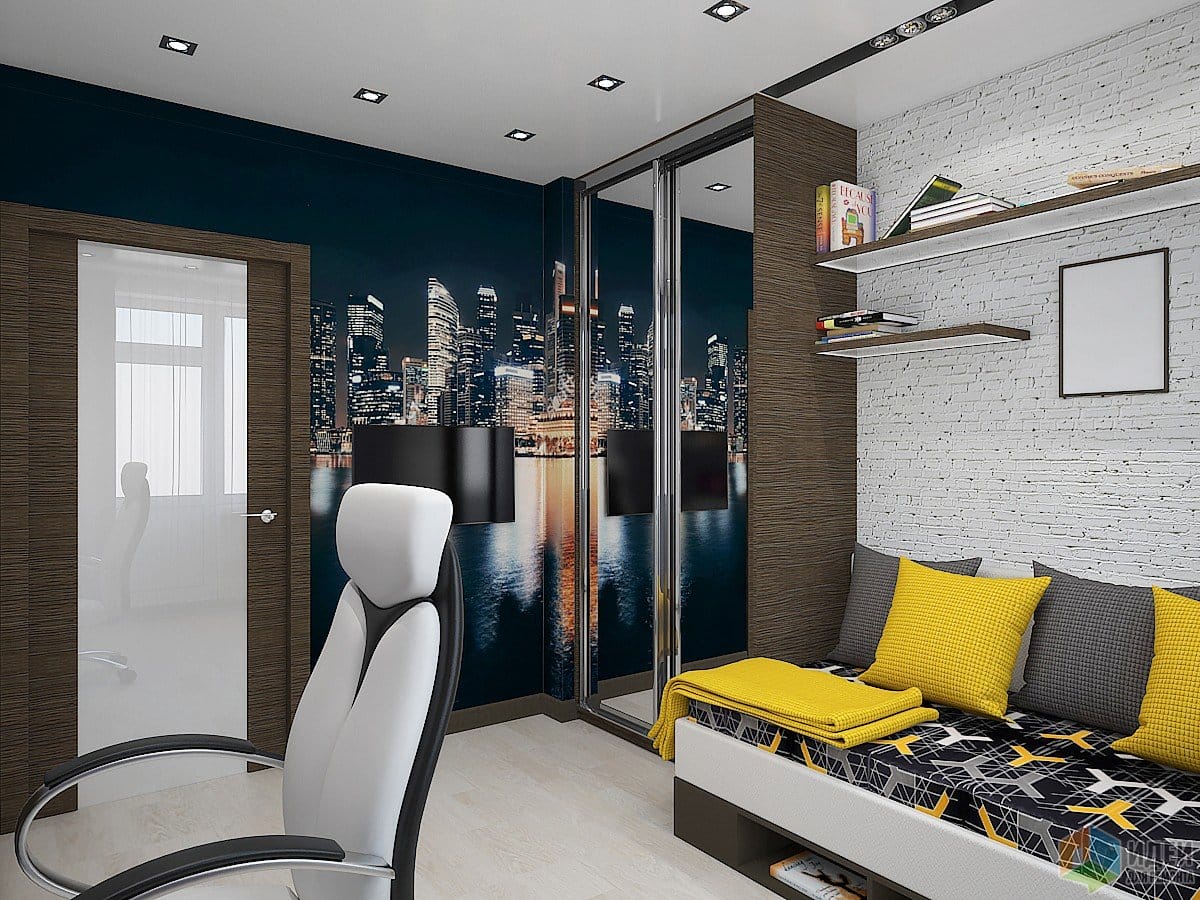 Кто не мечтает о большой и просторной комнате? Но что есть, то есть. Даже на таком маленьком пространстве можно создать волшебный интерьер. Не старайтесь захламлять пространство, поставьте все только самое необходимое. Первое без чего не обойтись — кровать. Можно выбрать и диван, но вполне вместиться односпальная кровать. Можно купить кровать подиум с системой хранения внизу. Еще один вариант — двухъярусная кровать.