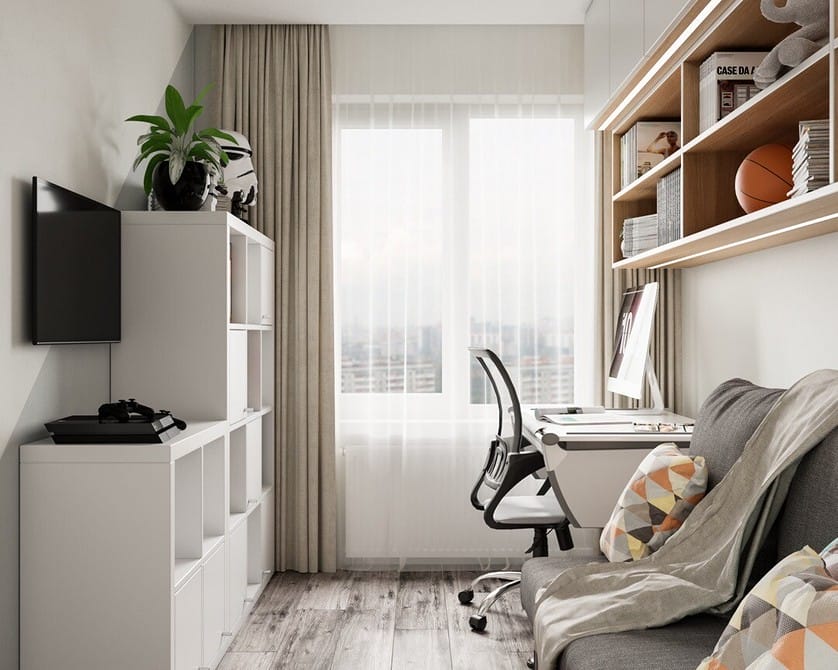 Такое решение отлично подойдет подростку старшего возраста, так как минимализм можно легко поменять и не потребуется капитальная переделка.