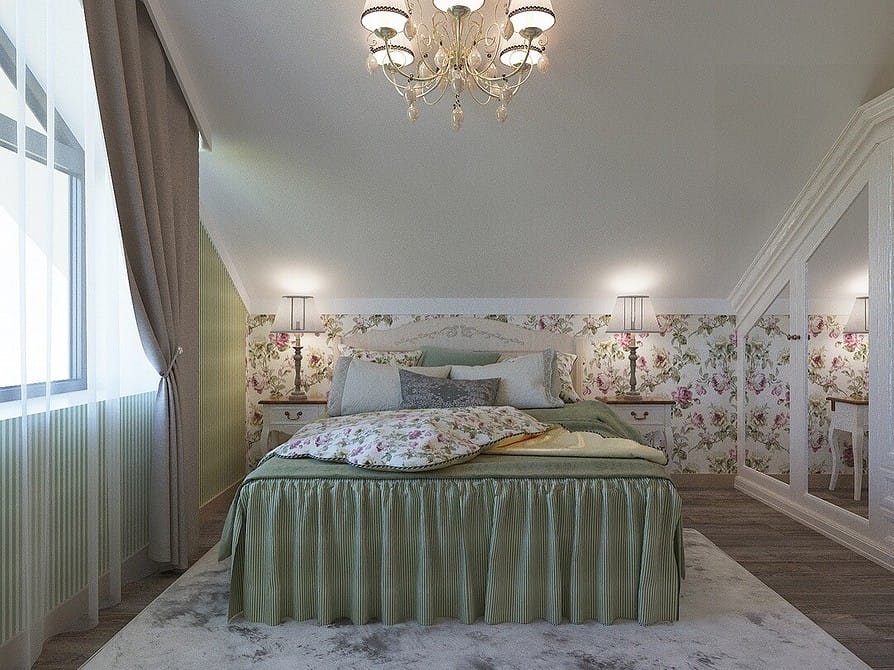 Яркий текстиль становится акцентным элементом, поэтому отслеживать цветовые комбинации стоит подбирать особенно внимательно. Поэтому если постельное белье, к примеру, в цветочек либо с другими узорами, кровать лучше накрывать покрывалом.