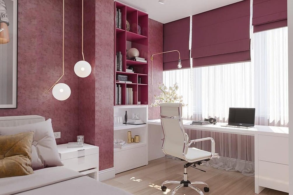Традиционно спальни девочек оформляются в оттенках розового. Многие скажут: «Никакого розового!». Да, в чистом виде он может быть довольно раздражающим и мрачным (особенно для стен), а для девочек постарше (10-12 лет) он может показаться слишком детским. Поэтому лучше украсить комнату насыщенными, стильными оттенками розового: