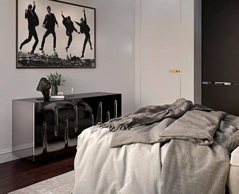 На стенах можно развесить картины или даже закрыть одну стену полностью панно или фотообоями. Избегайте множества мелких деталей. На большом пространстве они теряются, и создают ощущения дискомфорта. А если их будет слишком много, то создается эффект неубранности помещения. Для коллекции, например можно выделить одну полочку и расставить все туда. По габаритам комнаты закупается и соответствующая мебель.
