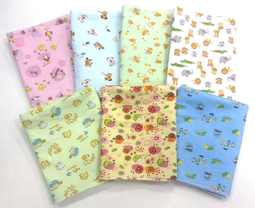 Сначала выбираем материал. Тонкие пеленки можно будет шить из ситца, а теплые из байка или фланели. Что касается расцветок, то здесь нет ограничений. Для девочек можно будет подобрать материю с цветочками и бабочками, а для мальчика сшить пеленки, украшенные машинками из современных мультфильмов.