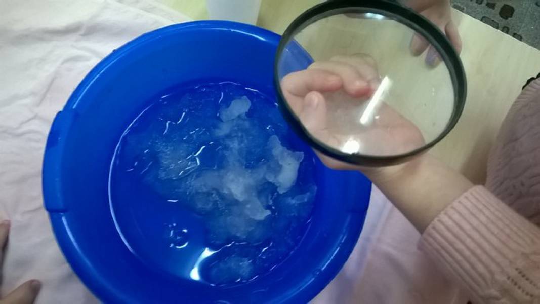 Все малыши зимой едят снег. Он белый, чистый, пушистый. Стоит провести с ним простой эксперимент. Набрать в ведёрко, принести в группу, поставить к батарее.