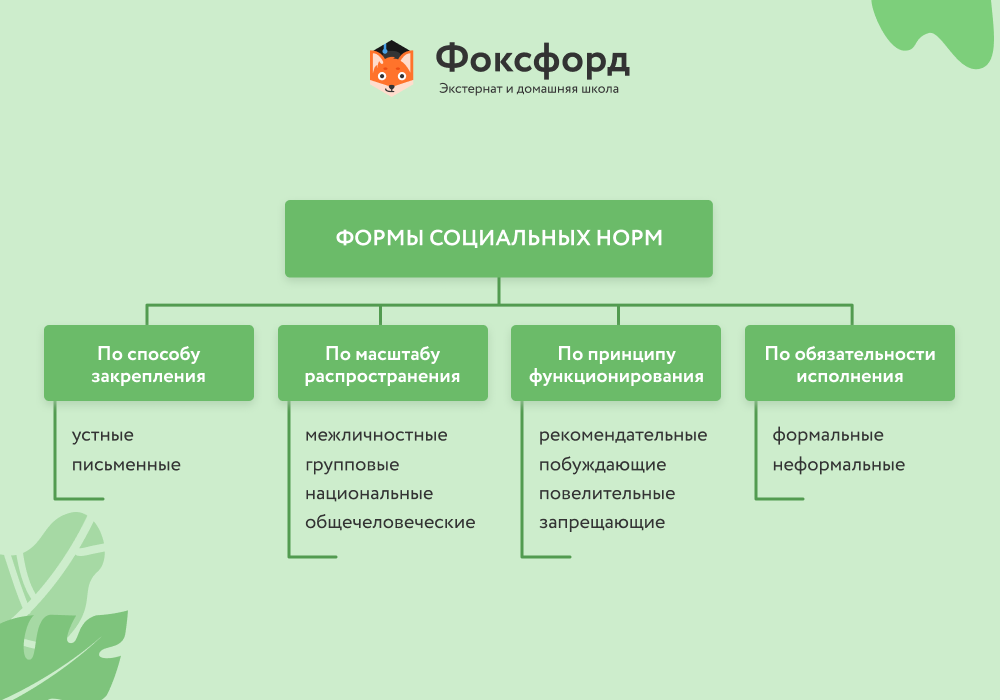 Кроме того, социальные нормы разделяются на формы в зависимости от принципа функционирования: