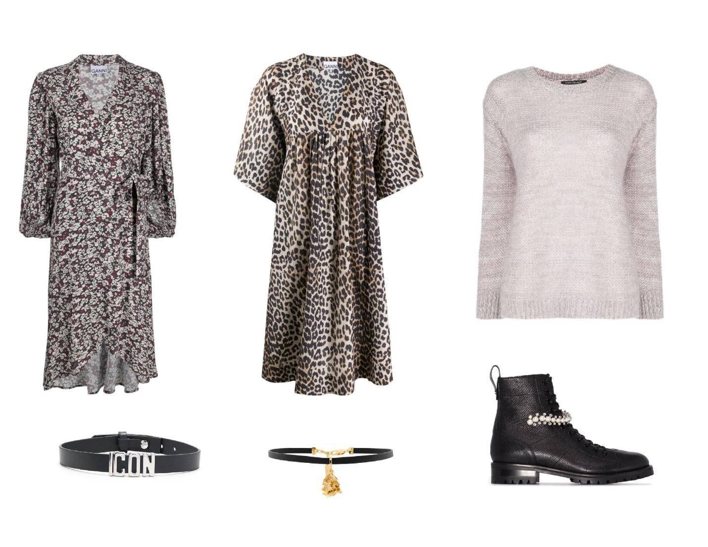 Образ 2. Платья GANNI, свитер Luisa Cerano, ботинки Jimmy Choo, чокеры Coup De Coeur и Dsquared2.