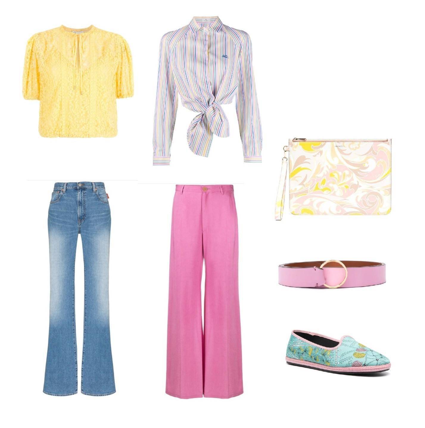 Образ 4. Джинсы Denimist, брюки Forte Forte, рубашка Etro, блузка Nk, балетки, сумка, ремень Emilio Pucci.
