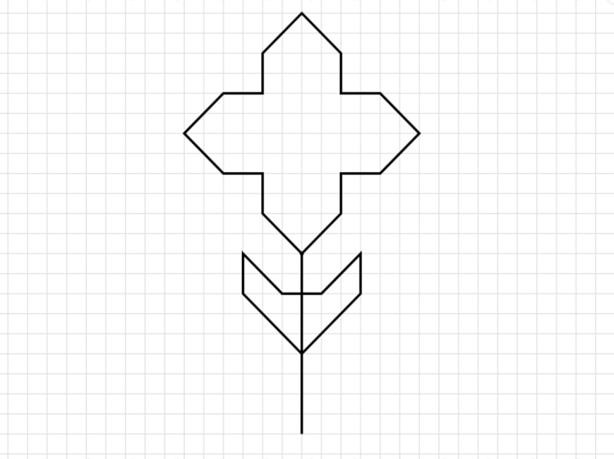 Это математический диктант с действиями по диагонали и с несколькими пересечениями. Цветок состоит из 27 действий, содержит в себе рисование по прямым линиям и по диагонали.