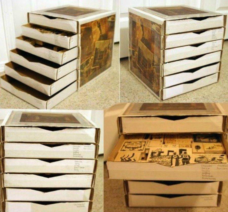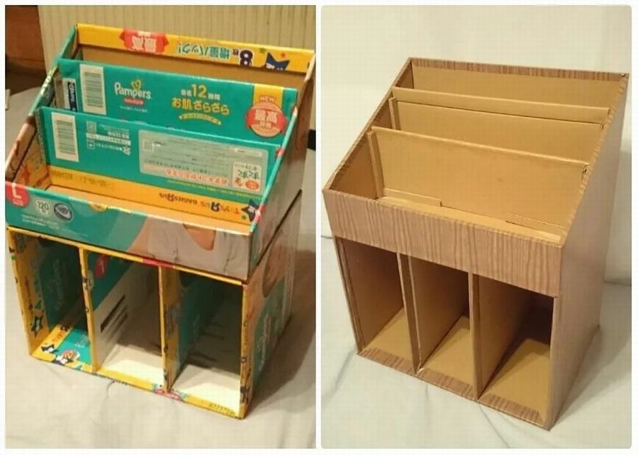 Если у вас остались пустые коробки из-под пиццы, то и из них можно соорудить детский органайзер. Его создание не займет много времени, но поможет в хранении мелких деталей.