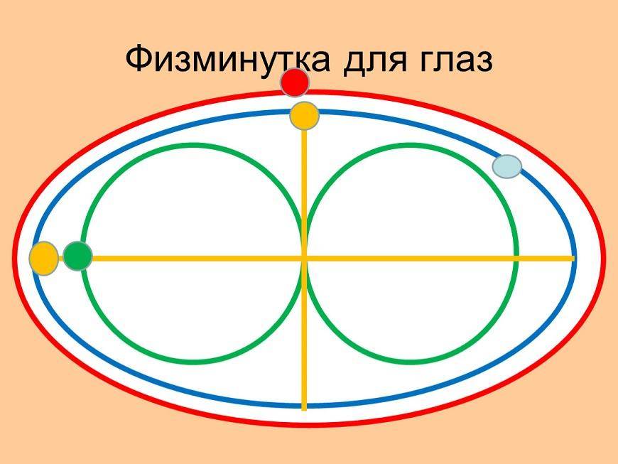 - Рисование глазами. На доске до начала урока начертить какую-либо кривую (спираль, окружность, ломанную). Предлагается глазами «нарисовать» эти фигуры несколько раз в одном, а затем в другом направлении.