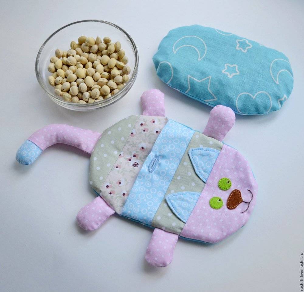 - Грелки, наполненные вишневыми косточками, как правило, выглядят как очень милые игрушки, следовательно, яркие цвета и различные выступающие части заинтересуют ребенка и отвлекут его от слез и улучшат настроение.