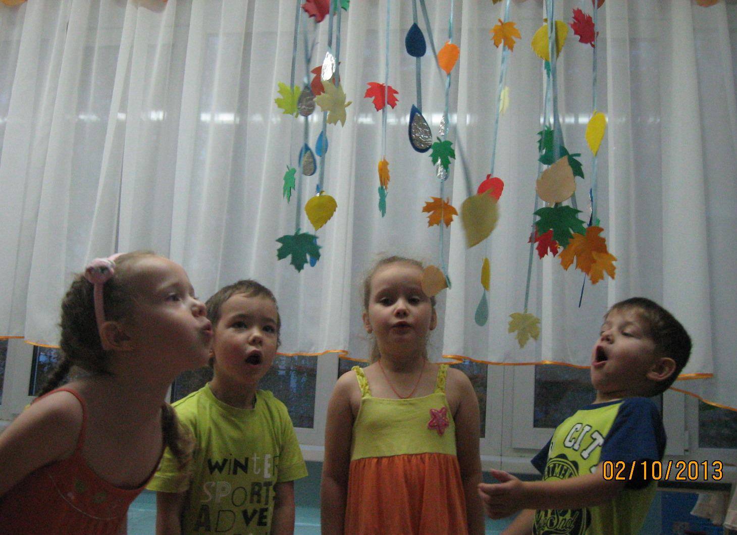 - «Листопад, листопад, листья желтые летят». Из цветной бумаги вырезаются разнообразные листья, упражнение выполняется аналогично.