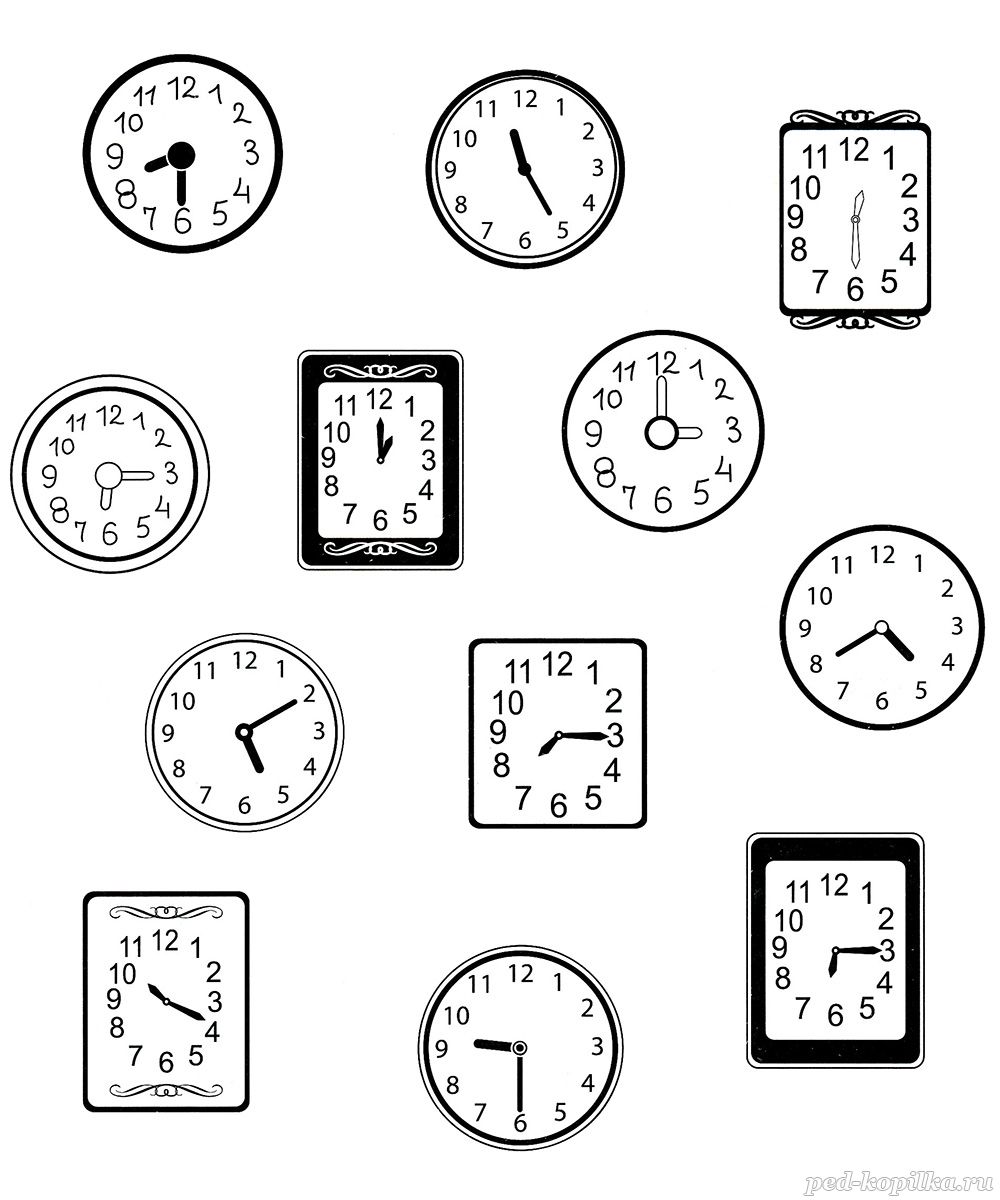 Найди часы, которые показывают одинаковое время, и соедини их линией.