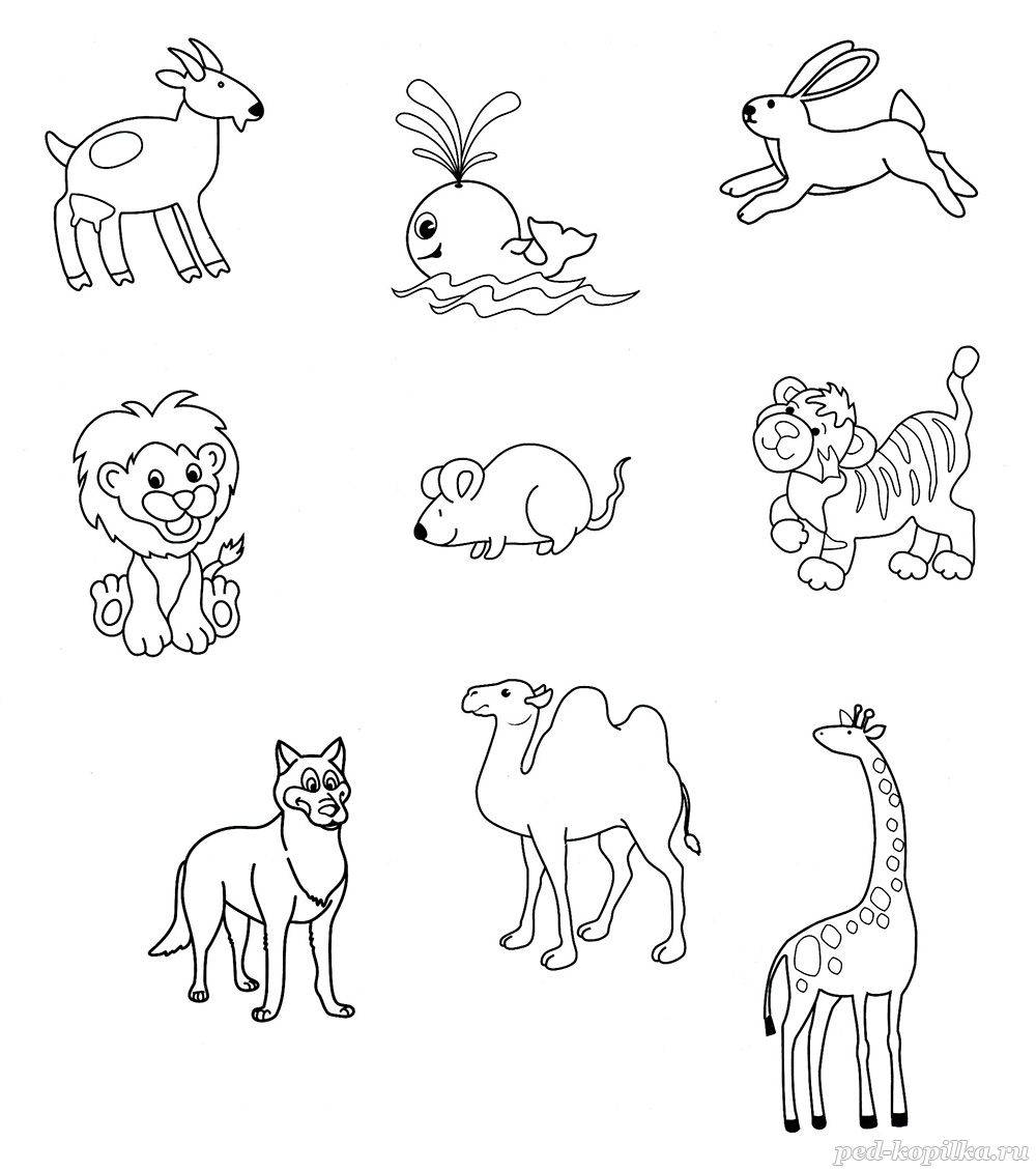 Обведи животных, которых ты считаешь самыми лёгкими и самыми тяжёлыми.