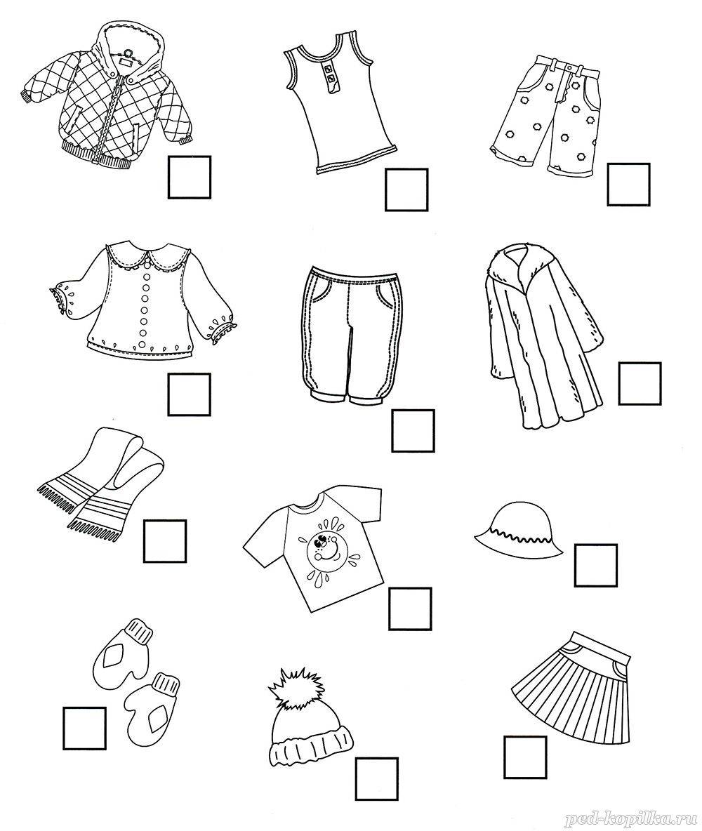 Какая одежда летняя, а какая – зимняя? Подпиши рядом с летней одеждой буквы Л, а с зимней – буквы З.