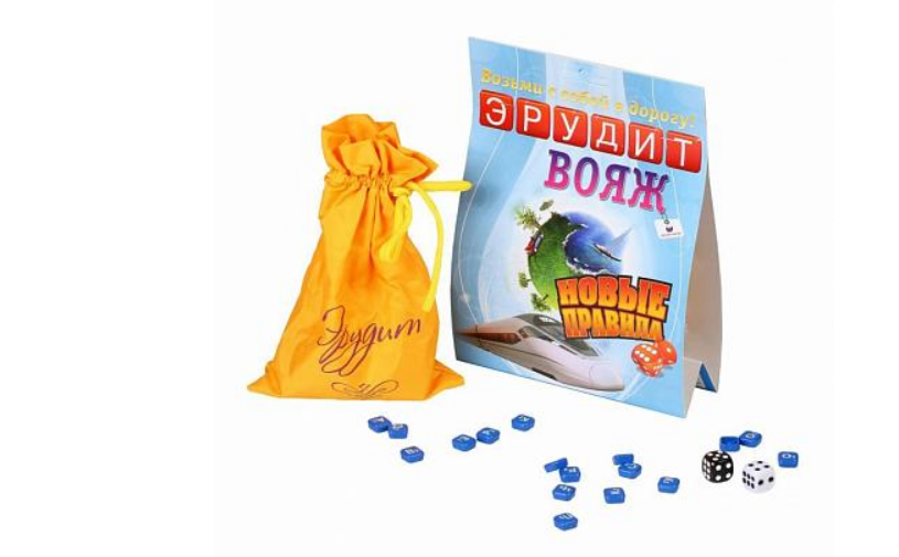 Эта игра в малогабаритной упаковке разработана предпочтительно для путников. Она свободно подойдет для 3-5 человек. Фишки которые вставляются на свои места, не выпадут даже во время движения. «Скрэббл Трэвел» довольно увлекательна и неординарна. Для тех людей, которые предпочитают более привычный вариант забавы, подойдет схожая игра «Эрудит Вояж». Игровые фишки упакованы в удобный фирменный мешочек, который не займет много места даже в дамской сумочке. Играть можно в машине, в детском автобусе по дороге в лагерь или в самолете. Внутри 131 фишка, правила игры, 2 игральные кости. На упаковке так и написано: «Возьми с собой в дорогу». Цена 290 рублей.