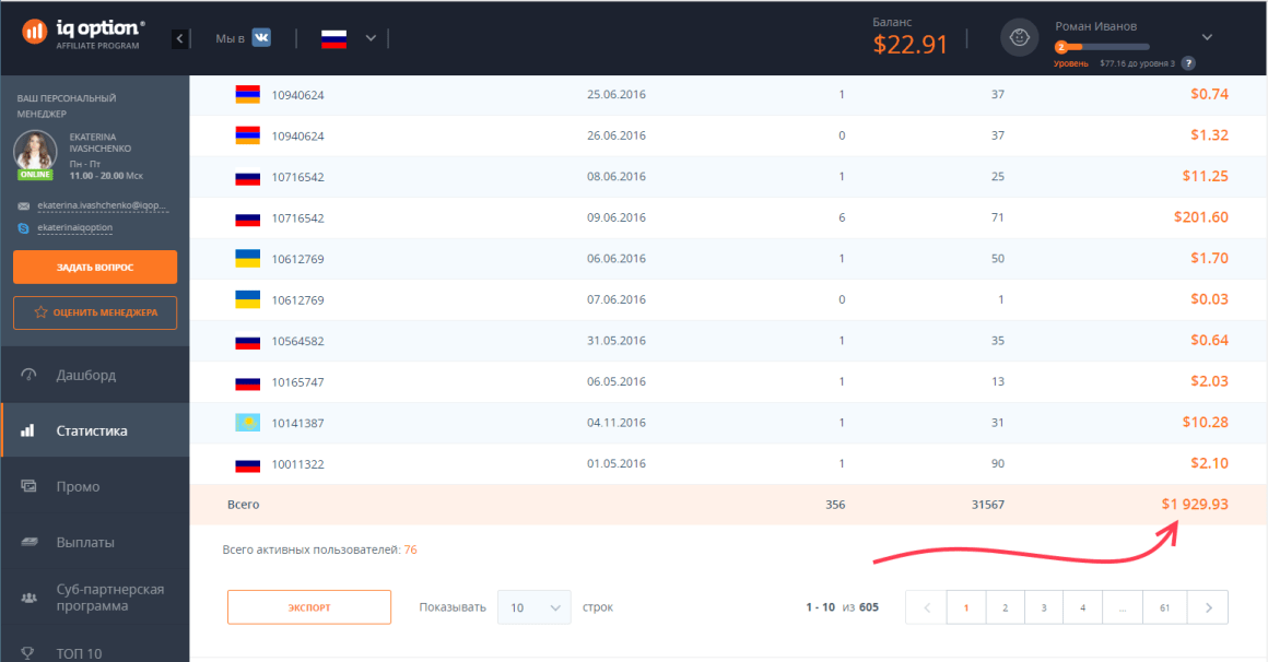 А вот мои результаты в партнерском кабинете у брокера за последние три месяца (включая половину мая):