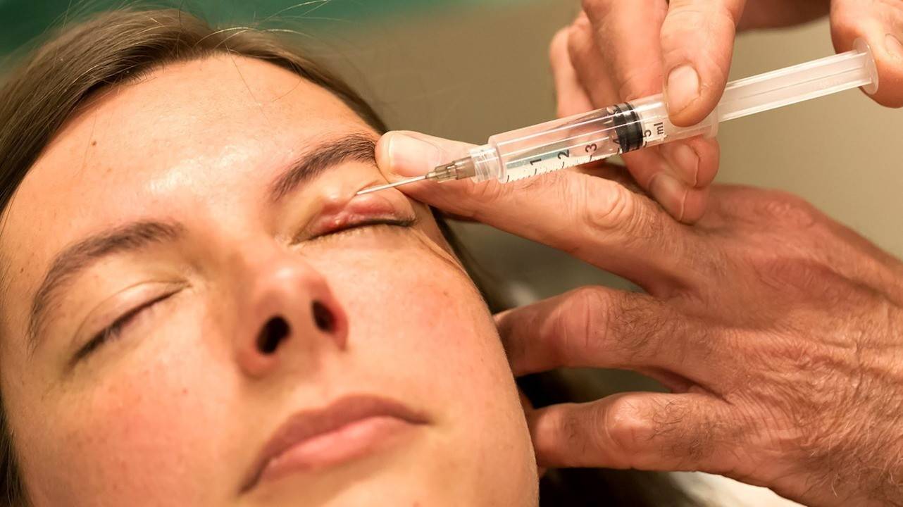 Отек увеличивается в размерах, глазная щель сужается. При запущенном случае глаз открыть не возможно. Отек увеличивается в размерах, внутри образования формируется гнойное содержимое.
