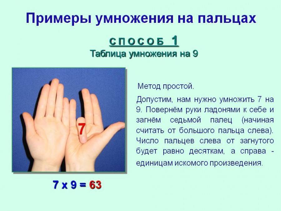 Но мало кому известно, что при помощи 10 пальцев рук можно легко выучить умножение на 9. Как это сделать? Проще простого.